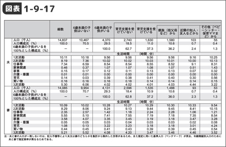 育児支援を受けている場合・・・・2.24時間 育児支援を受けていない場合・・・・1.18時間