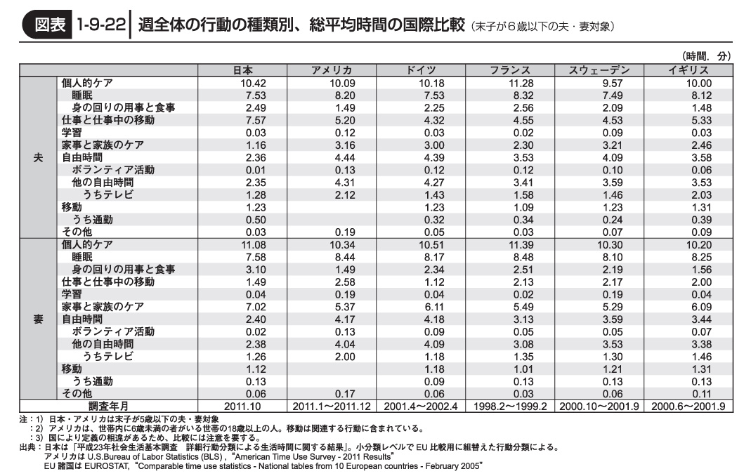 ≪スウェーデン≫夫 3.21時間 妻 5.29時間