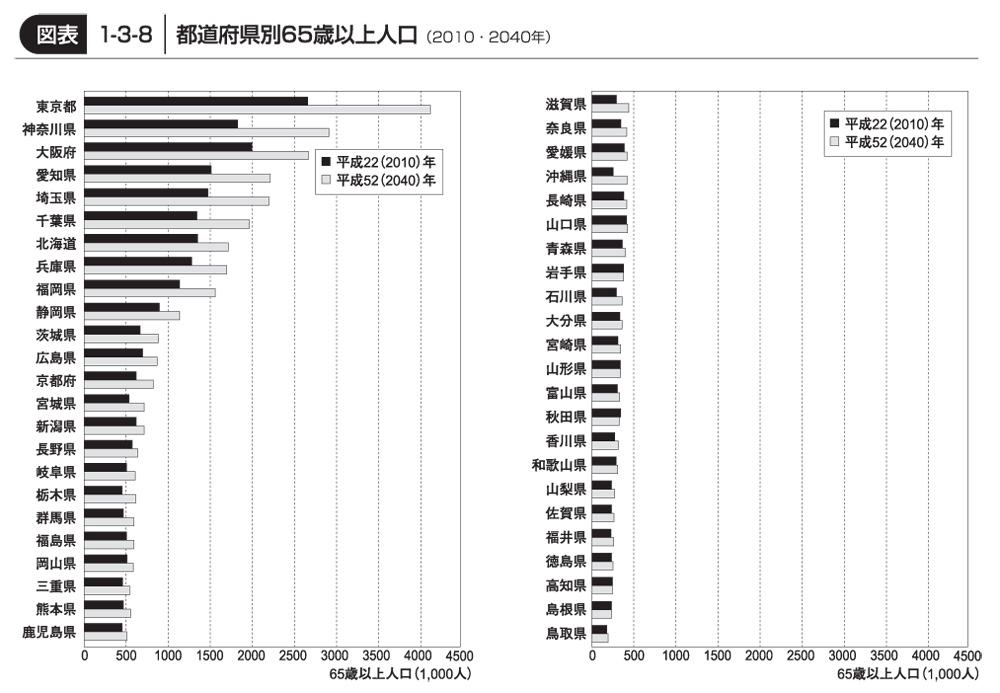 図表1-3-8【図表1-3-8】2010年に65歳以上人口が多い上位3県の2040年の人口予測