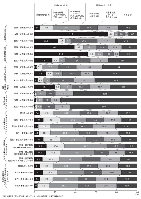 人生の満足度に関する調査/新入社員の30歳時点での予想年収/女性の活躍に関する調査/女性の活躍推進/女性登用に対する企業の意識/大企業の女性の登用と活用/女性介護労働者の働き方/介護者の就業と離職/医師の勤務実態・働き方/女性の起業意識/パート主婦の4タイプ/主婦の早朝アルバイト&深夜アルバイト/コア人材としての女性社員育成に関する調査/女性管理職と働くことへの意識/若手社員のキャリア意識・男女差/勤労者の職場状況に関する意識/社員クチコミから見る退職理由/働き方変革への取組み/仕事と家庭の両立・女性の職場での活躍に関する意識/ワーク・ライフ・バランスへの取組状況/ワークライフバランス大賞&女性活躍パワーアップ大賞/福利厚生・ライフサポート/男性の育児休暇取得に関する意識/夫婦間の家事・生活意識のズレ/共働き夫婦の夫婦仲と不公平感に関する調査/離婚に関する調査/国立大学における男女共同参画/高校生の価値意識/農業経営における女性の関与